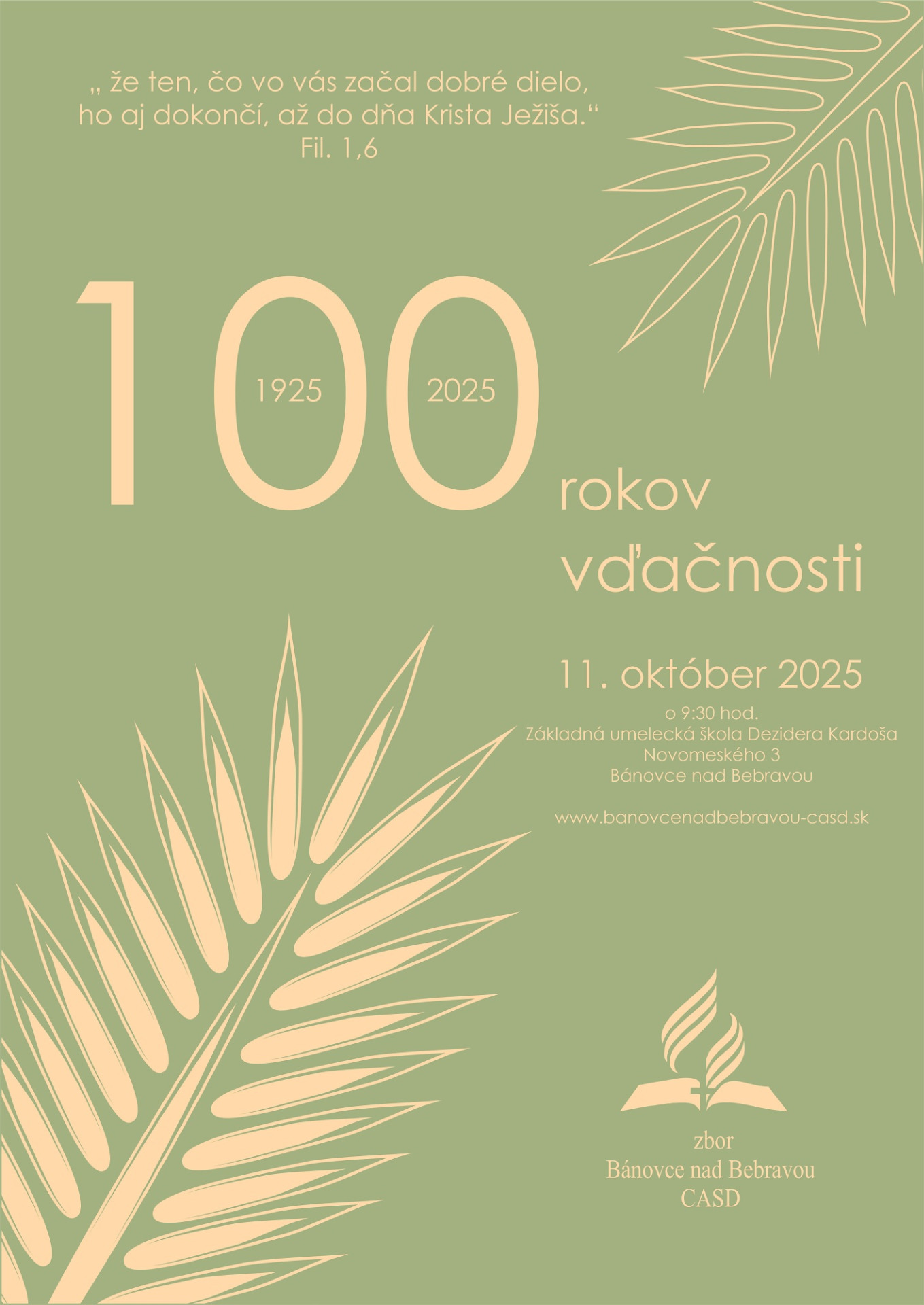 Kde: Kresťanský dom Cirkvi adventistov siedmeho dňa, SNP 637/10, Bánovce nad Bebravou 957 01.
